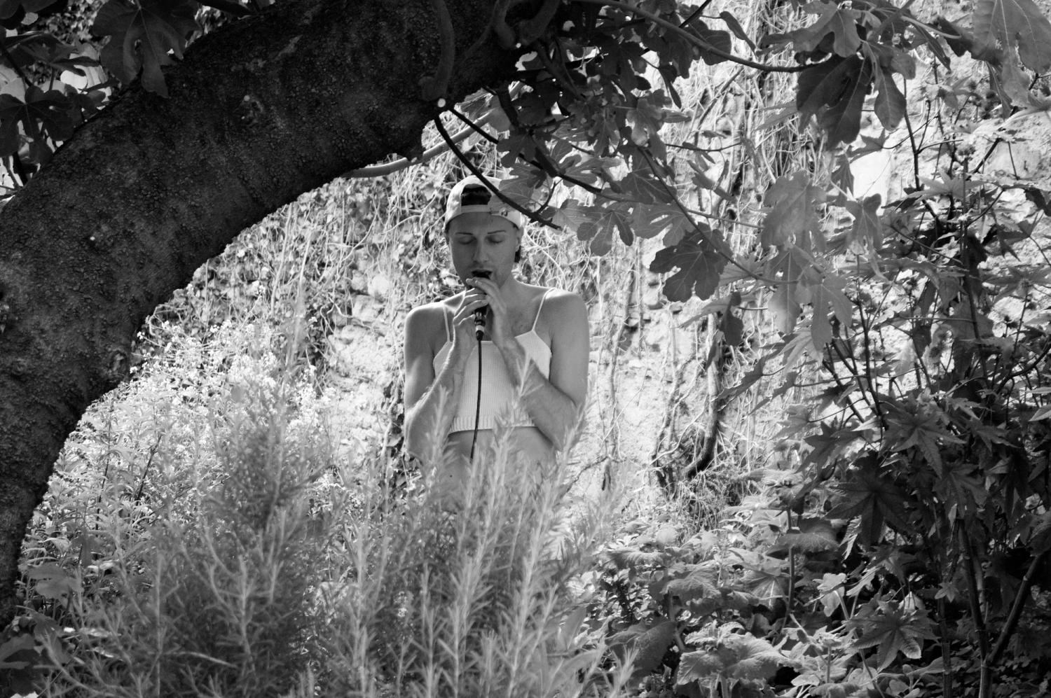 Während emotionale Arbeit schon seit einiger Zeit ein feministisches Anliegen ist, schlägt Léa Rivière vor, auch über das nachzudenken, was sie narrative Arbeit nennt. Sie schreibt: "Wenn die vorherrschenden Erzählungen unser Leben nicht abbilden, kann es sich so anfühlen, dass keine Geschichte hinter uns steht. Um zu überleben, müssen wir selbst die Geschichten erschaffen, die unsere Existenzen spiegeln." Genau das macht Léa in diesem Solo. Sie tut sich unter anderem mit Vorfahr*innen, Steinen und Pokémons zusammen und entwirft Geschichten als Waffen: weiche, geschmeidige, biegsame Waffen. So entsteht ein Ort, um mit sich selbst zu sein, ein Ort des Berührens und Loslassens.